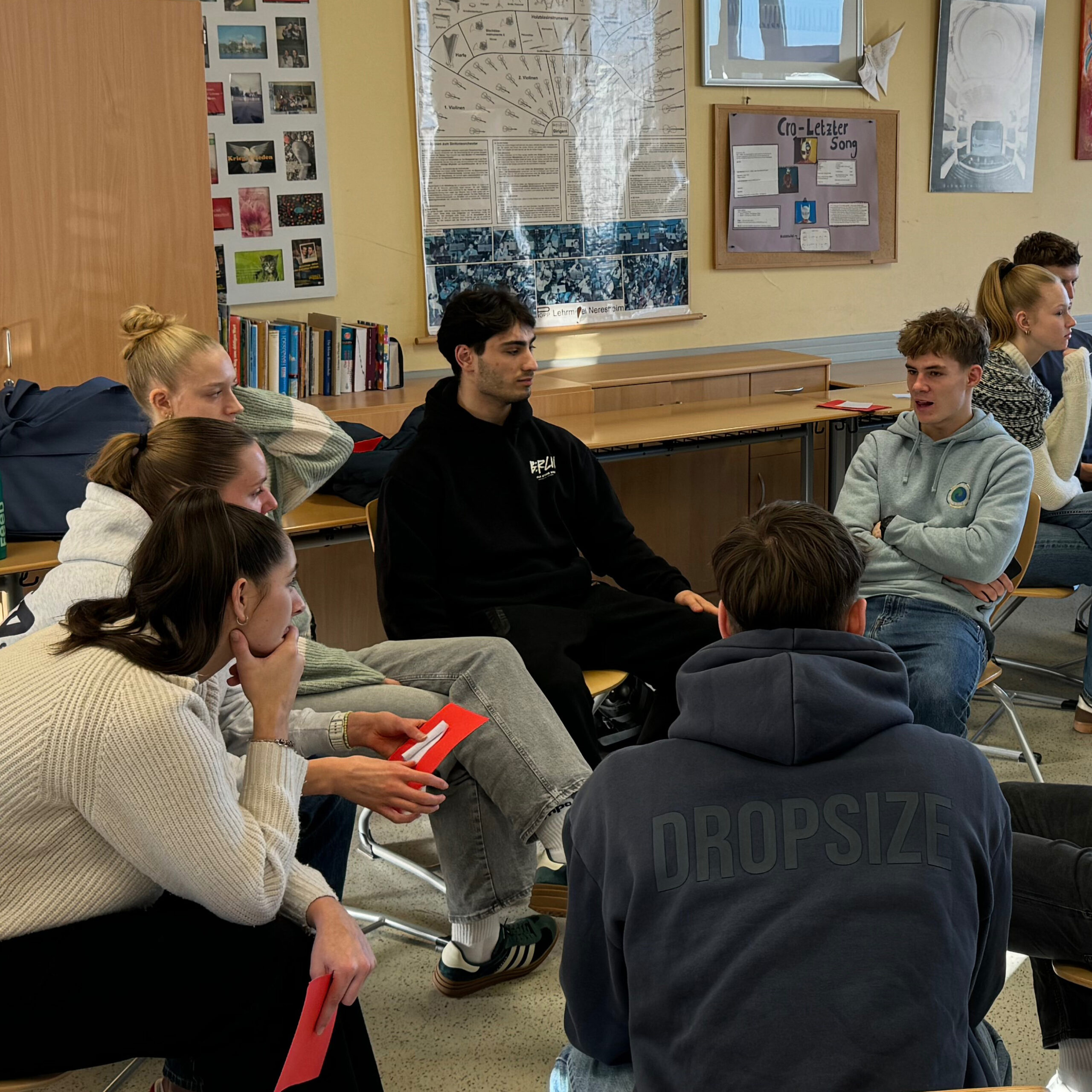 Schülerinnen und Schüler diskutieren Themen, die sie wirklich bewegen – ehrlich, respektvoll und auf Augenhöhe. Ohne Noten, ohne Leistungsdruck, aber mit Haltung. Die TAFEL.RUNDE ist ein geschützter Raum, in dem sie lernen, ihre Meinung zu äußern, zuzuhören und andere Perspektiven zu verstehen. Gesellschaft lebt davon, dass Menschen miteinander reden und sich verstehen – auch wenn sie unterschiedlicher Meinung sind.